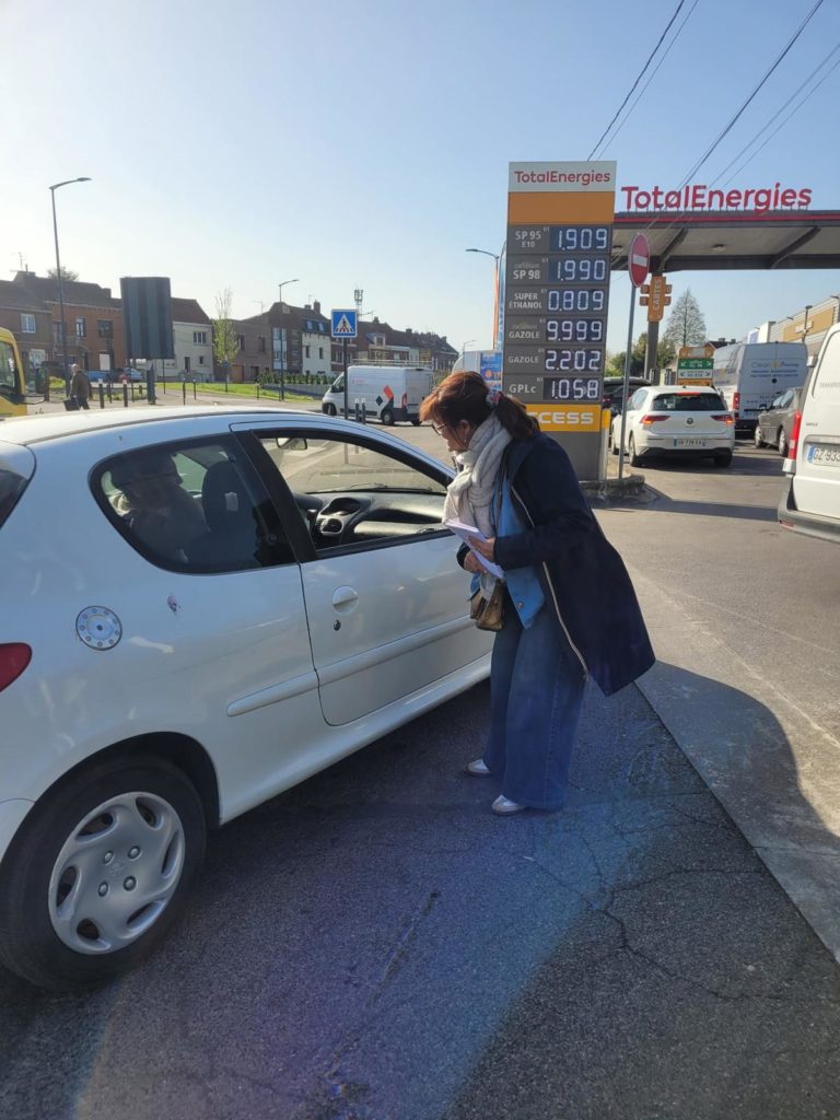Cathy Apourceau-Poly a décidé de distribuer avec des militants des tractes aux conducteurs arrivant à la station TotalEnergies face à la hausse des prix, des énergies et notamment du carburant que chacun utilise chaque jour.