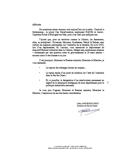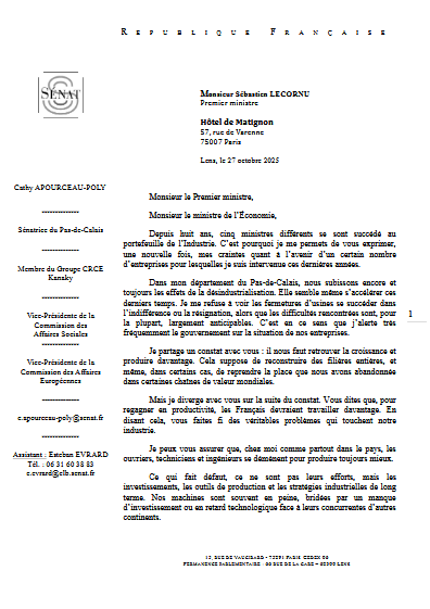 Trop de dossiers industriels restent sans réponse. Ainsi, Cathy Apourceau-Poly a adressé un courrier au Premier ministre et au ministre de l’Économie pour faire le point sur deux ans d’interpellations restées trop souvent lettre morte.
