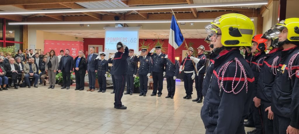 Cathy Apourceau-Poly était accompagnée du Chef du CIS, de Madame Sandra GUTHLEBEN, Sous-préfète de l’arrondissement de Lens, de Monsieur François LEMAIRE, Vice-Président du Conseil Départemental du Pas-de-Calais et Maire de Bully-les-Mines, de Anouk Breton Conseillère Départementale et Maire de Angres, de La colonelle Claudia STONCZEWSKI, Lieutenant-Colonel.